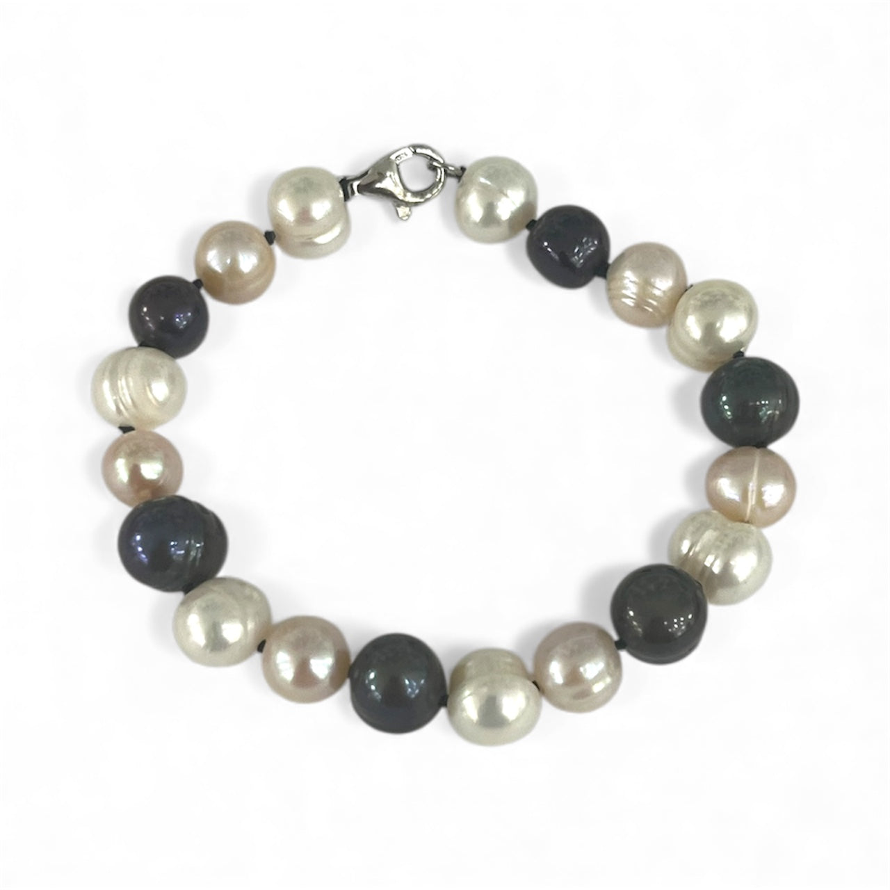Sterling Silver FWP Strand Necklace, Earrings, and Bracelet Set PRLNK154
