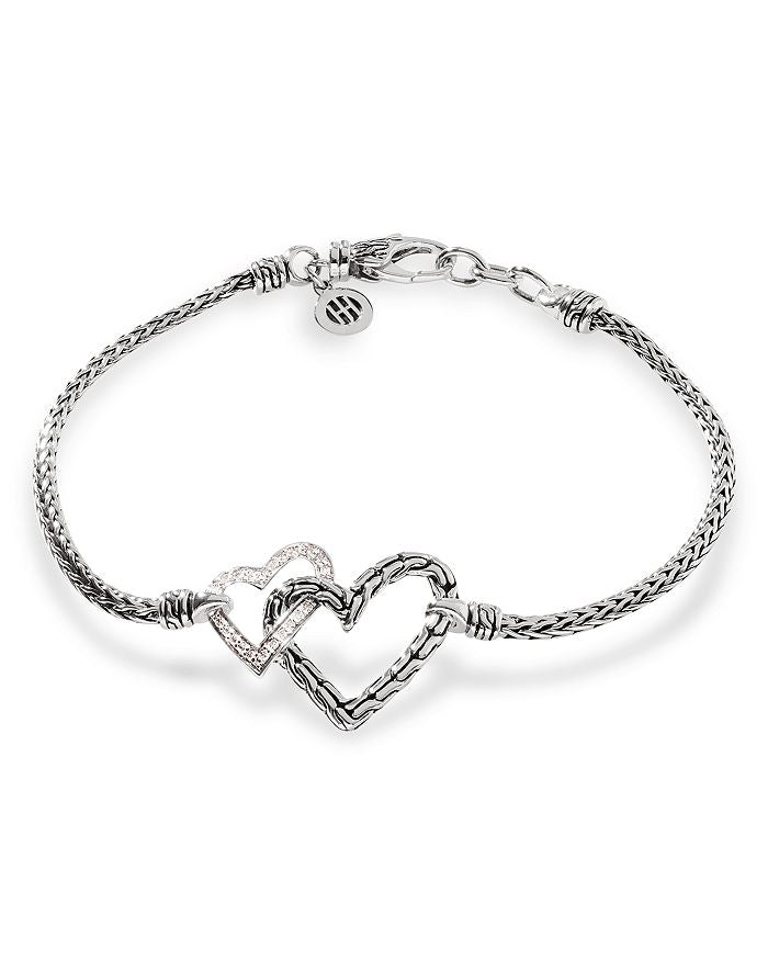 JOHN HARDY- Silver Double Heart Link with Diamonds Bracelet D.11TW