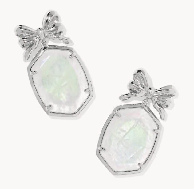 KENDRA SCOTT- Daphne Bow Drop Earring in Rhodium Iridescent Crystal Ivory Illusion