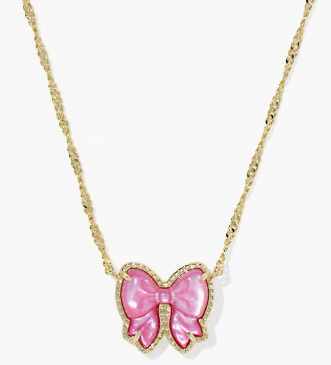KENDRA SCOTT- Haley Gold Bow Short Pendant Necklace in Rose Violet Mother of Pearl