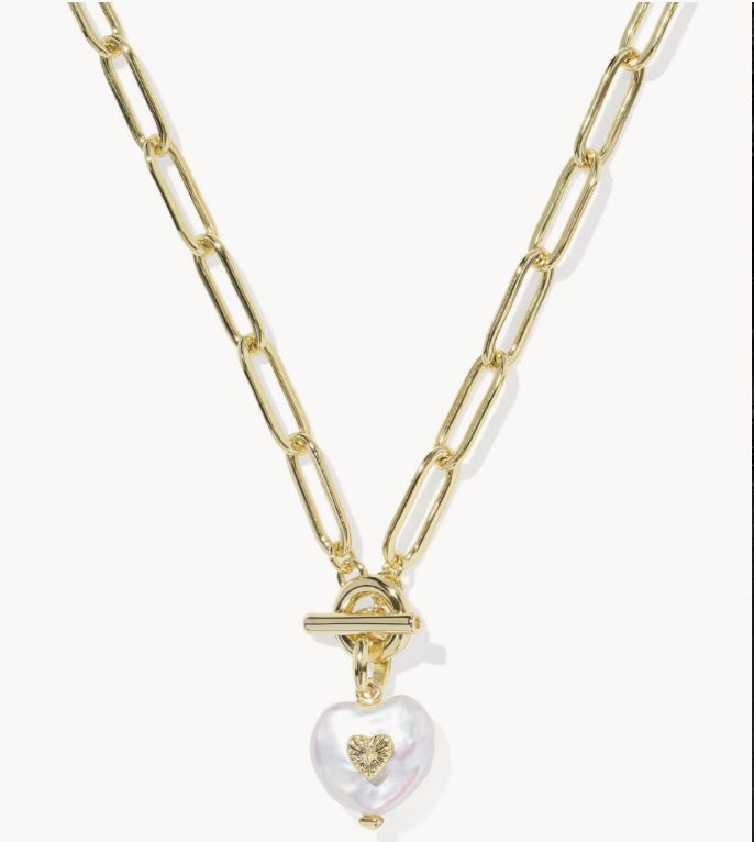 KENDRA SCOTT- Sasha Gold Heart Short Pendant Necklace in Fresh Water Pearl