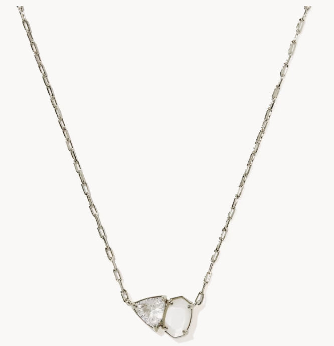KENDRA SCOTT- Tatum Rhodium Pendant Necklace in Neutral Mix