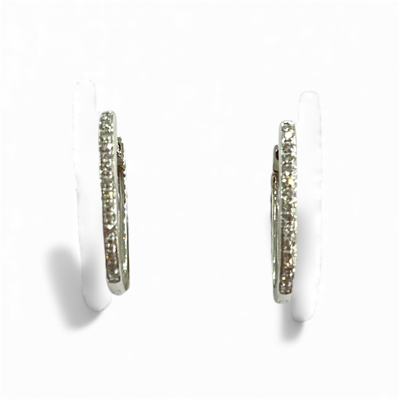 14kt White Gold and Diamonds Paper Clip Huggie Earrings D.06TW