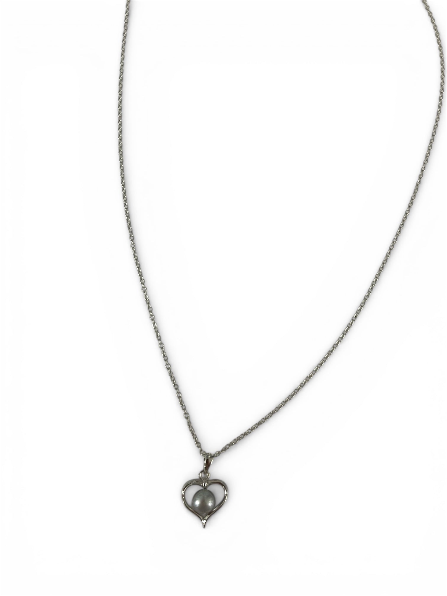 .925 Silver Fresh Water Pearl Heart Pendant Necklace