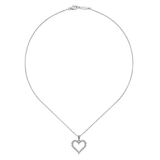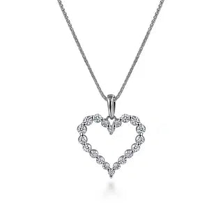 GABRIEL & CO- 14K White Gold Open Heart Diamond Pendant Necklace