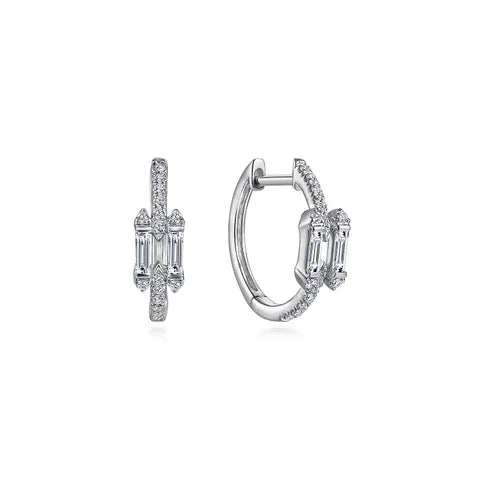 GABRIEL & CO- 14k White Gold Prong Set and French Pave 15mm Round Classic Diamond Hoop Earrings