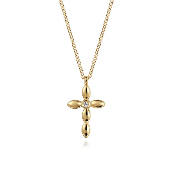 GABRIEL & CO- 14K Yellow Gold Diamond Cross Necklace D.02TW