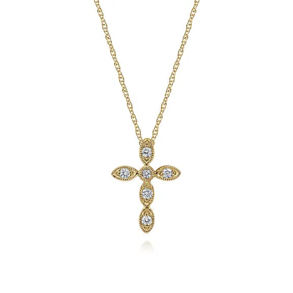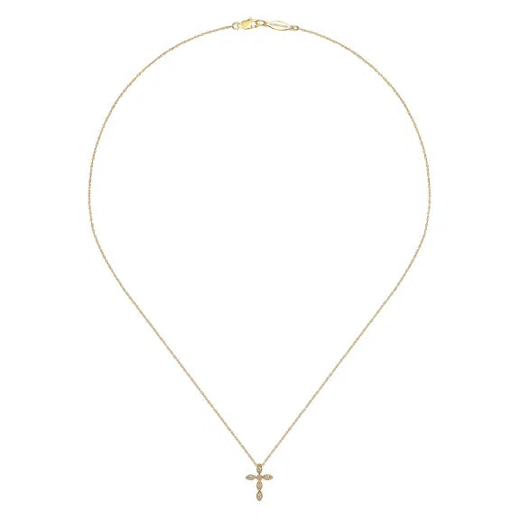 GABRIEL & CO- 14K Yellow Gold Marquise Shaped Diamond Cross Necklace D.09TW