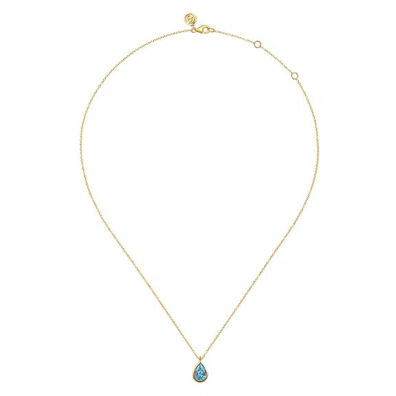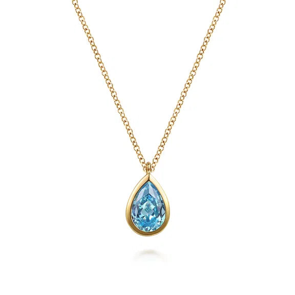 GABRIEL & CO- 14K Yellow Gold Teardrop Blue Topaz Pendant Necklace