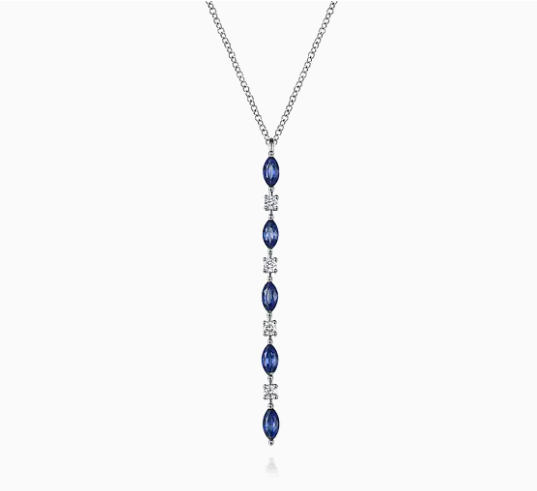 GABRIEL & Co- 14kt Diamond & Marquise Blue Sapphire Vertical Bar Necklace