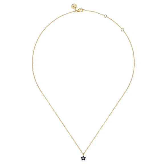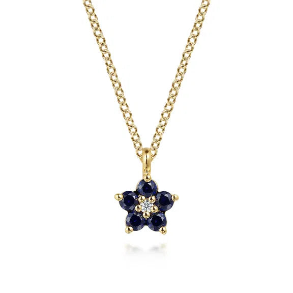 GABRIEL & CO- Floral- 14k Yellow Gold Diamond and Sapphire Flower Pendant Necklace