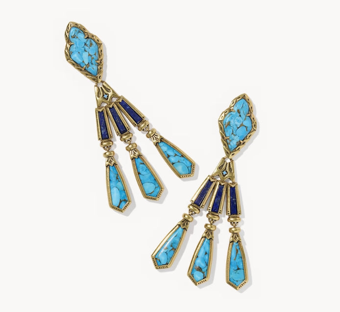 KENDRA SCOTT- Adeline Vintage Gold Statement Earrings in Blue Mix