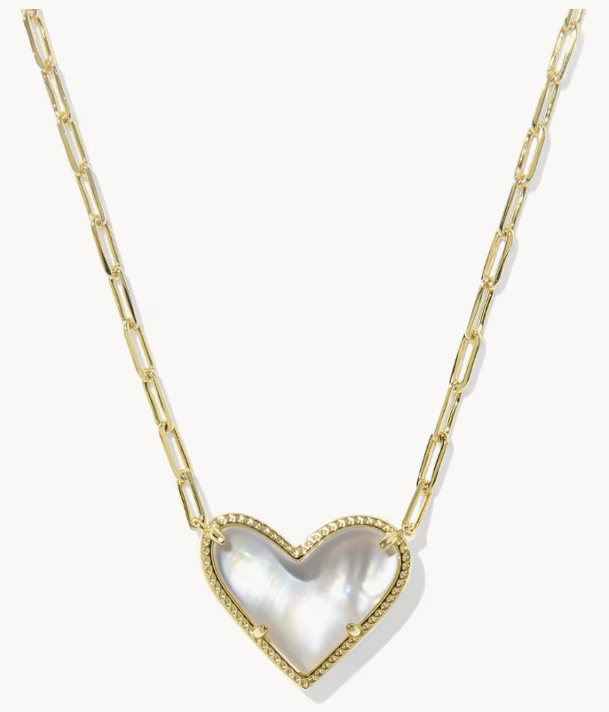 KENDRA SCOTT- Ari Gold Heart Statement Pendant Necklace in Ivory Mother of Pearl