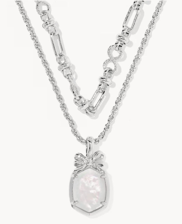 KENDRA SCOTT- Daphne Bow Multi Strand Necklace in Rhodium Iridescent Ivory Illusion