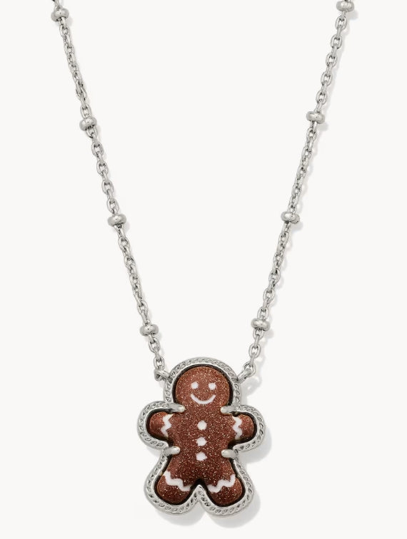 KENDRA SCOTT- Gingerbread Pendant Necklace in Rhodium Brown Goldstone