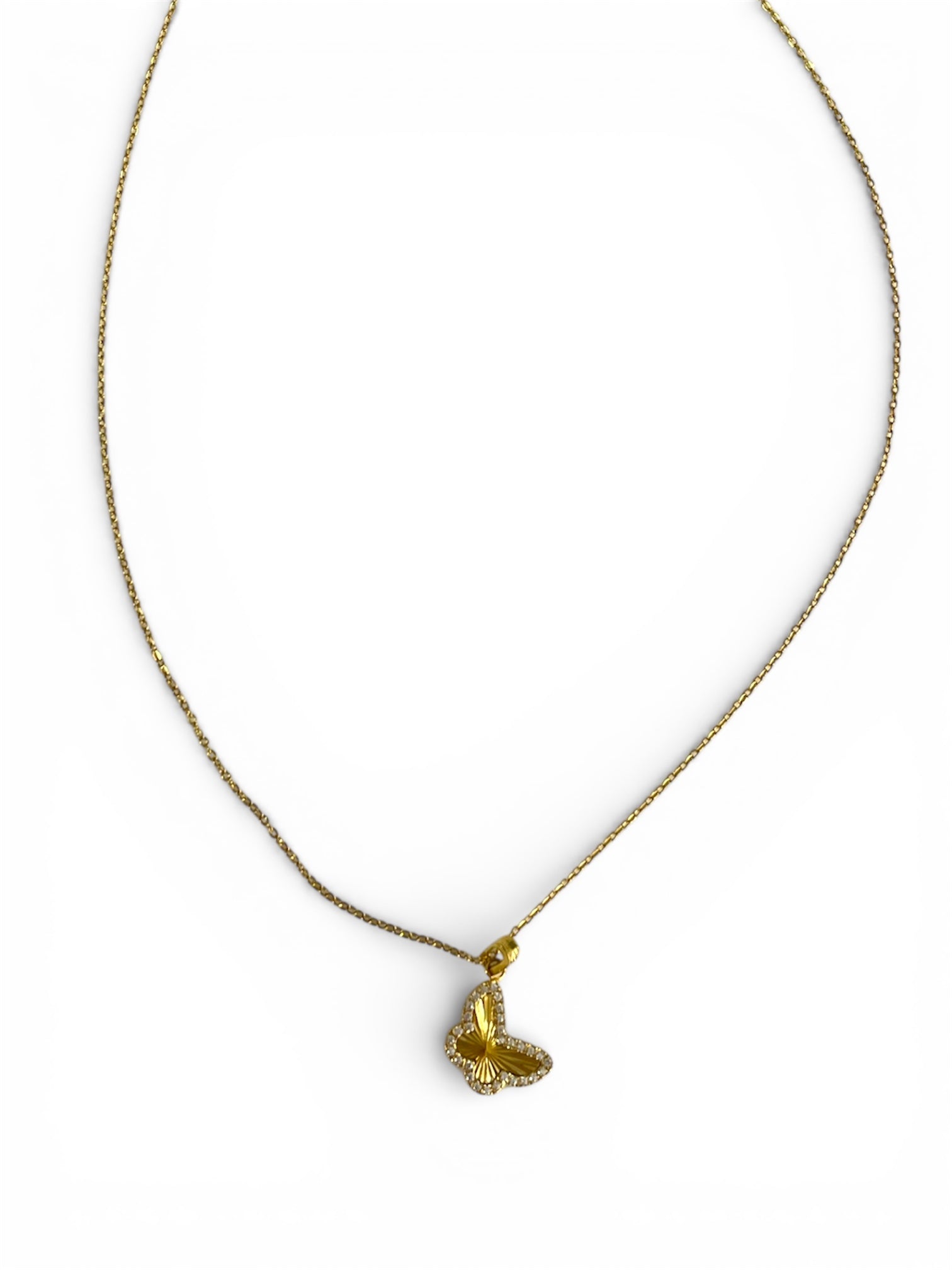 Stainless Steel CZ Yellow Tone Butterfly Necklace
