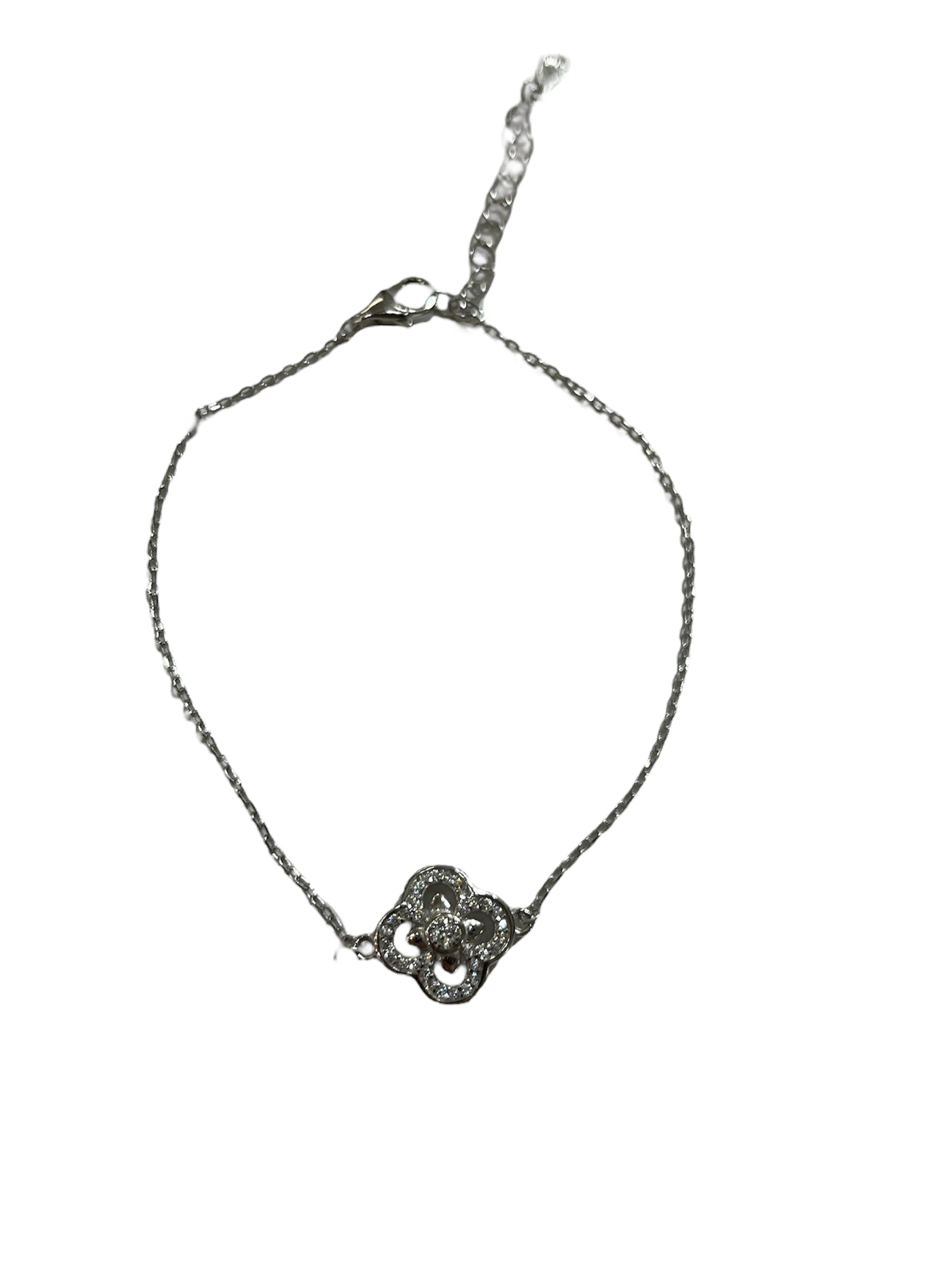 .925 Sterling Silver Clover CZ Pave Bracelet Length: 7"+1" Extender S-FF-JSC3277-B