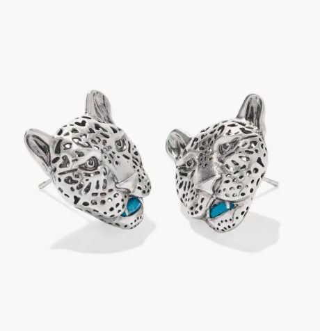 KENDRA SCOTT- Maura Jaguar Vintage Silver Statement Stud Earrings in Variegated Indigo