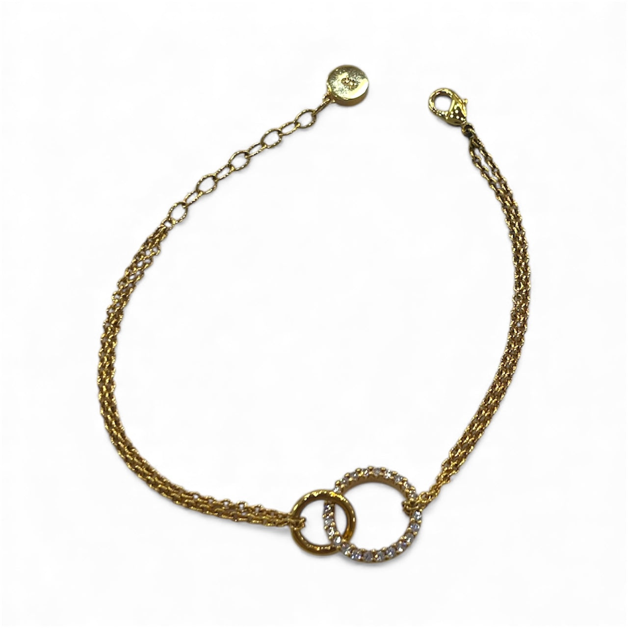REBECCA- Bronze Double Chain Link Bracelet with White Stones