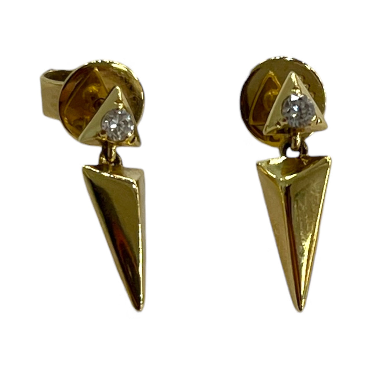 14kt Yellow Gold and Diamond Triangle Drop Stud Earring D.05TW