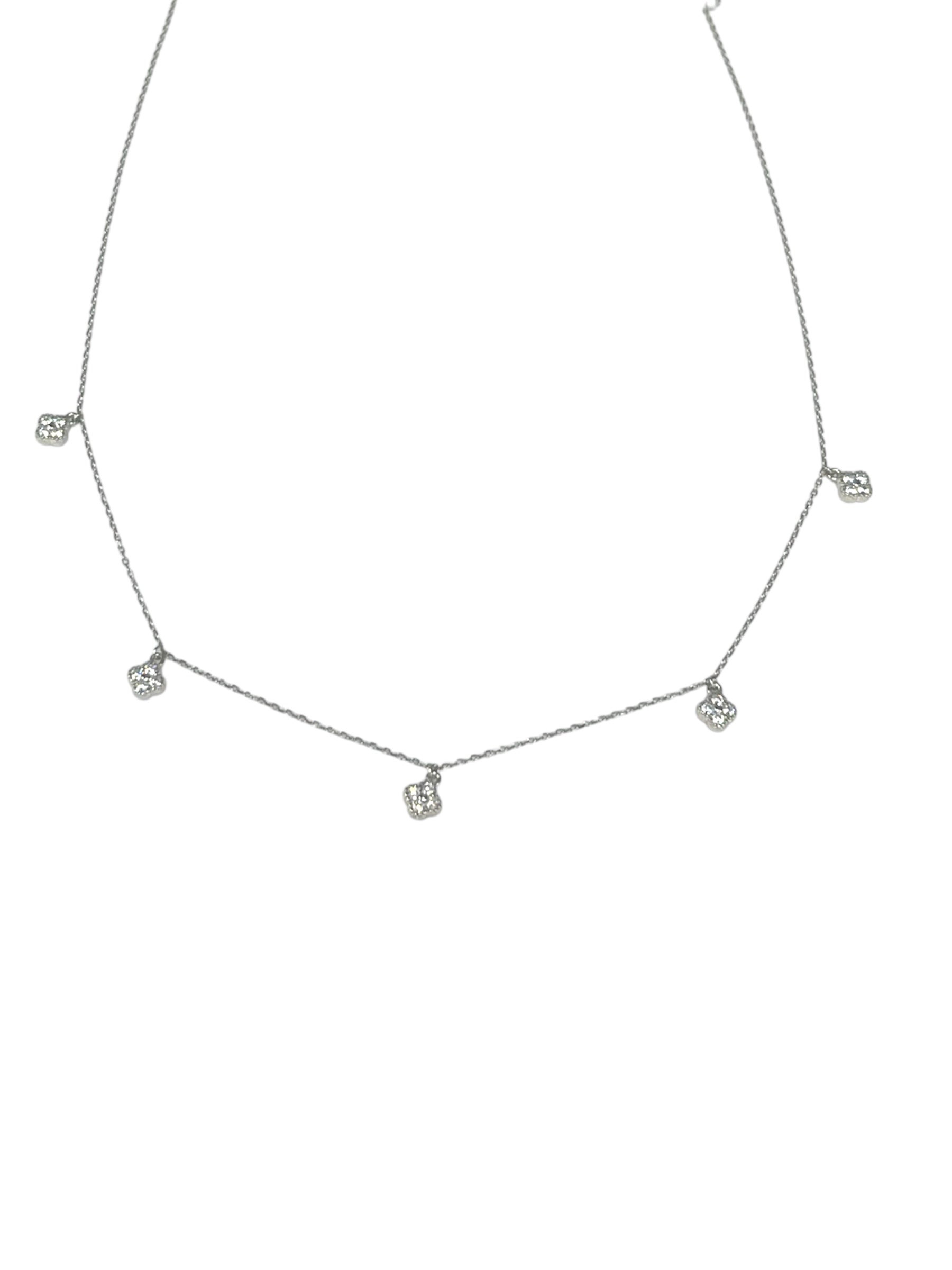 .925 Sterling Silver Pave Clover Charm Necklace S-FF-JSC3365-N