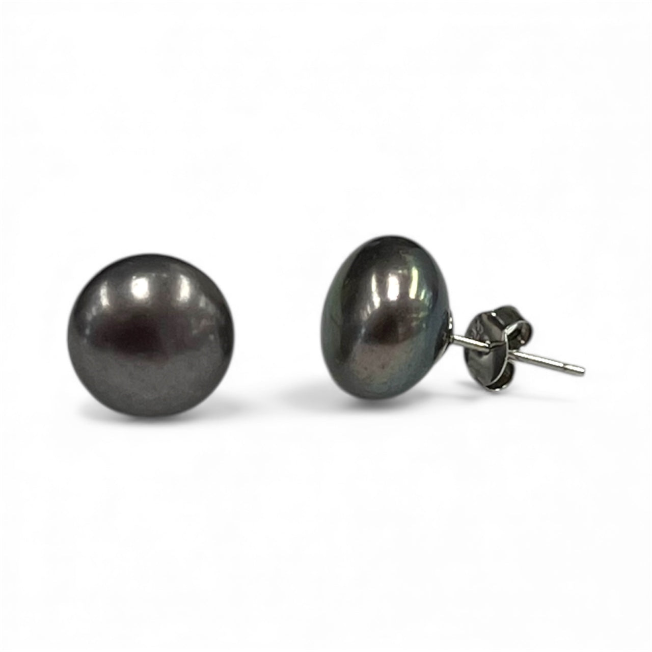 .925 Silver Stud Earrings w/Black Dyed Fresh Water Pearl S-PRLER11-12B