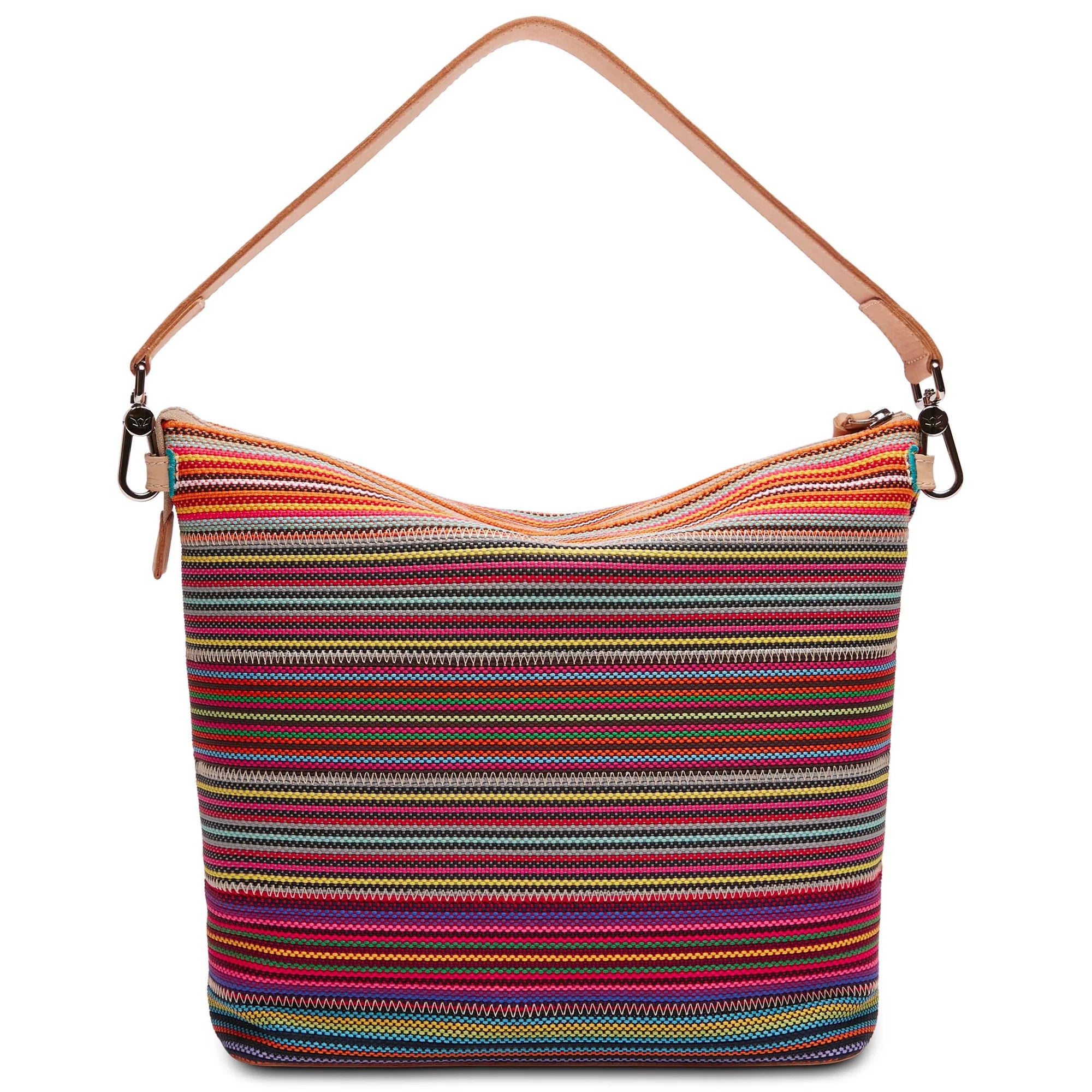 The Hobo is a convertible crossbody or shoulder bag with two included straps. This multicolored bag comfortably carries the essentials and much more. Perfect for those who like to be prepared for anything and everything!